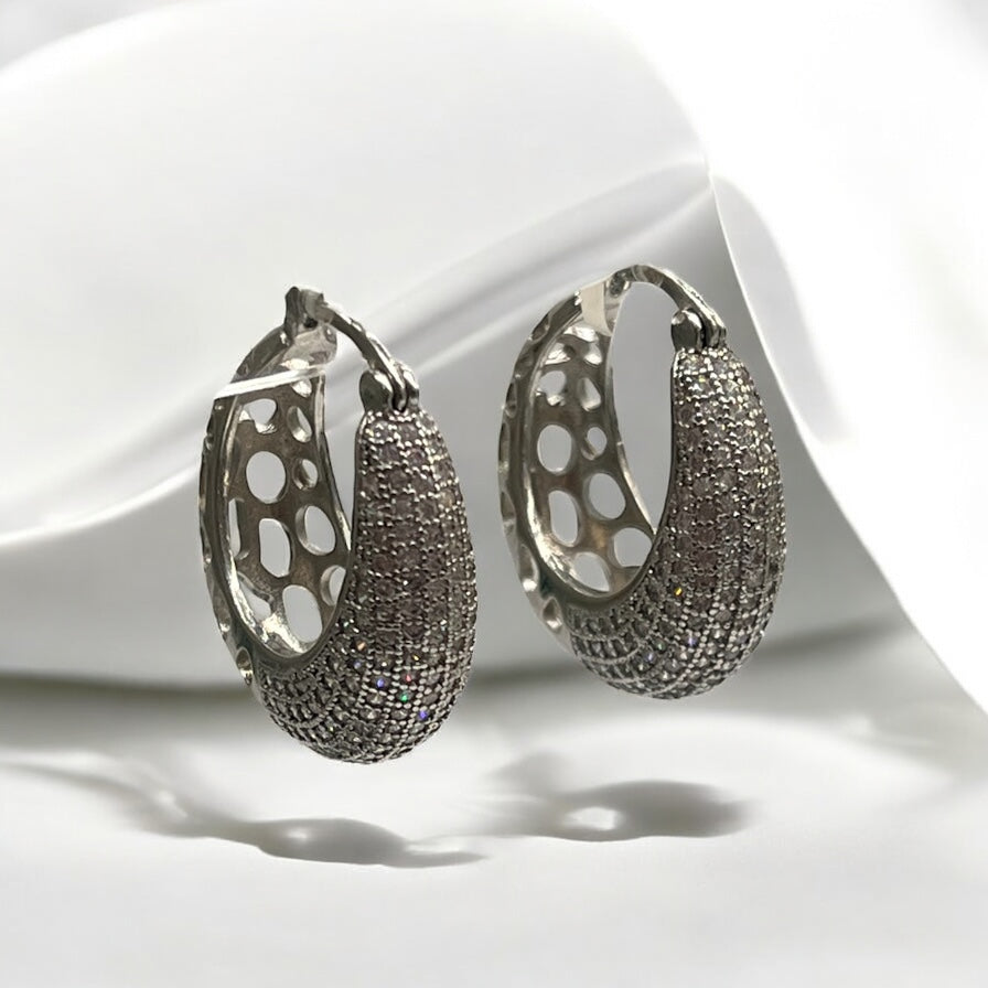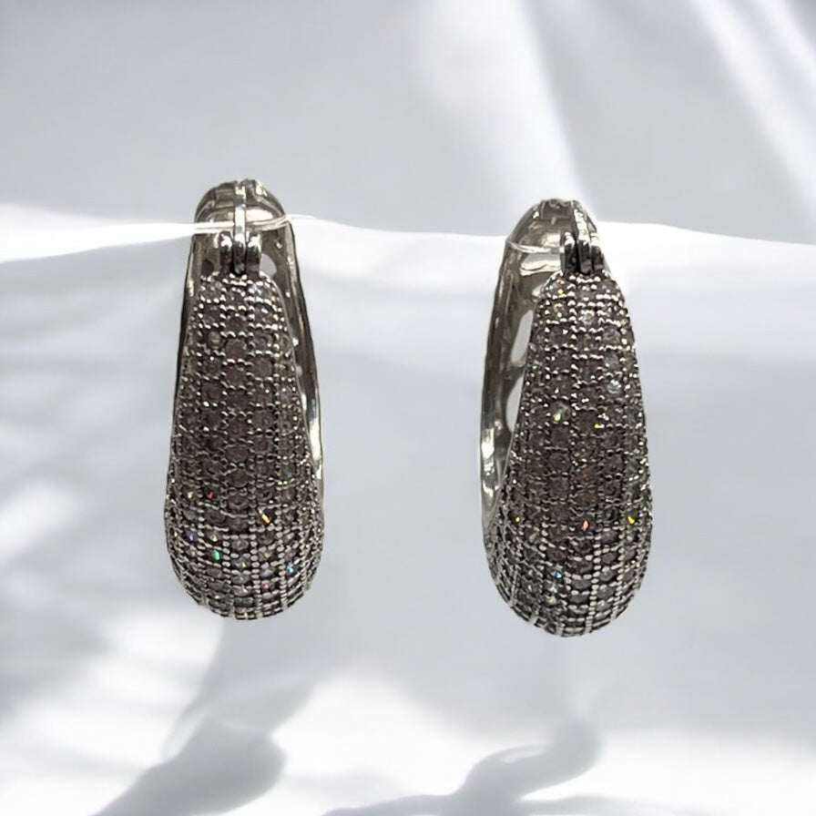 Brinco Argola Grande Cravejada de Zircônia Ródio