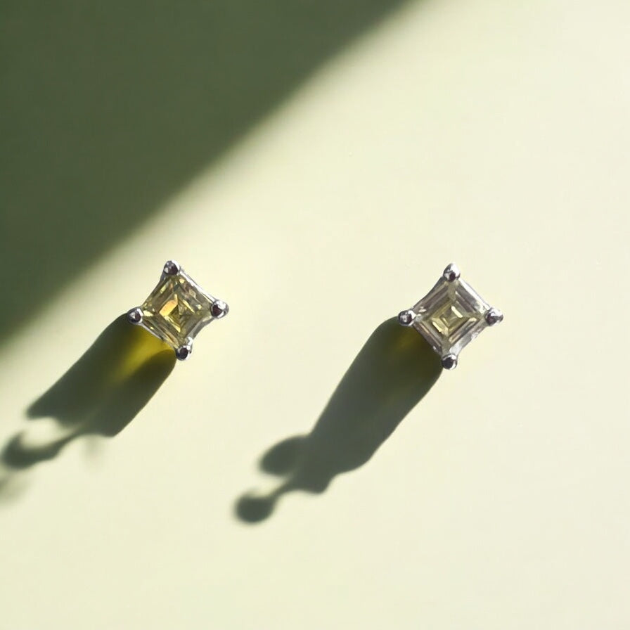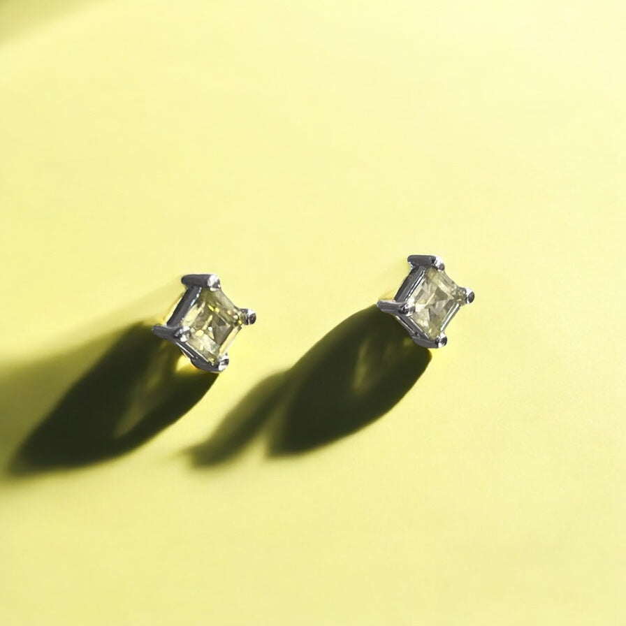 Brinco Ponto de Luz Quadrado Pedra Verde Lima