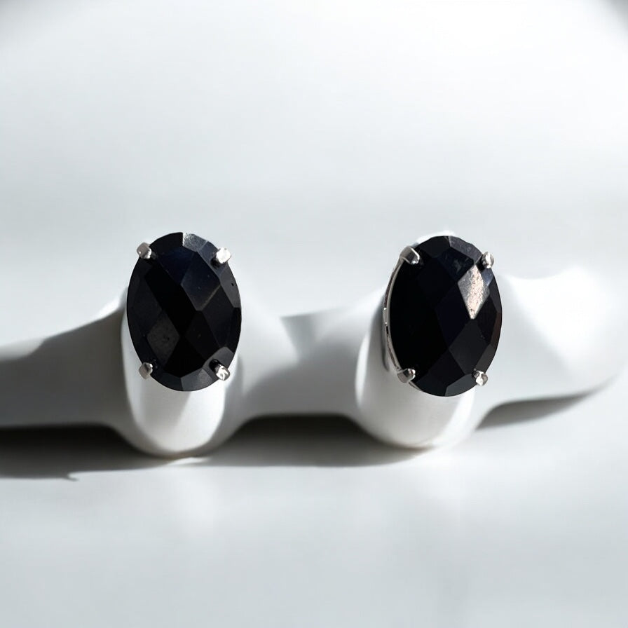 Brinco Pedra Oval Cristal Preto
