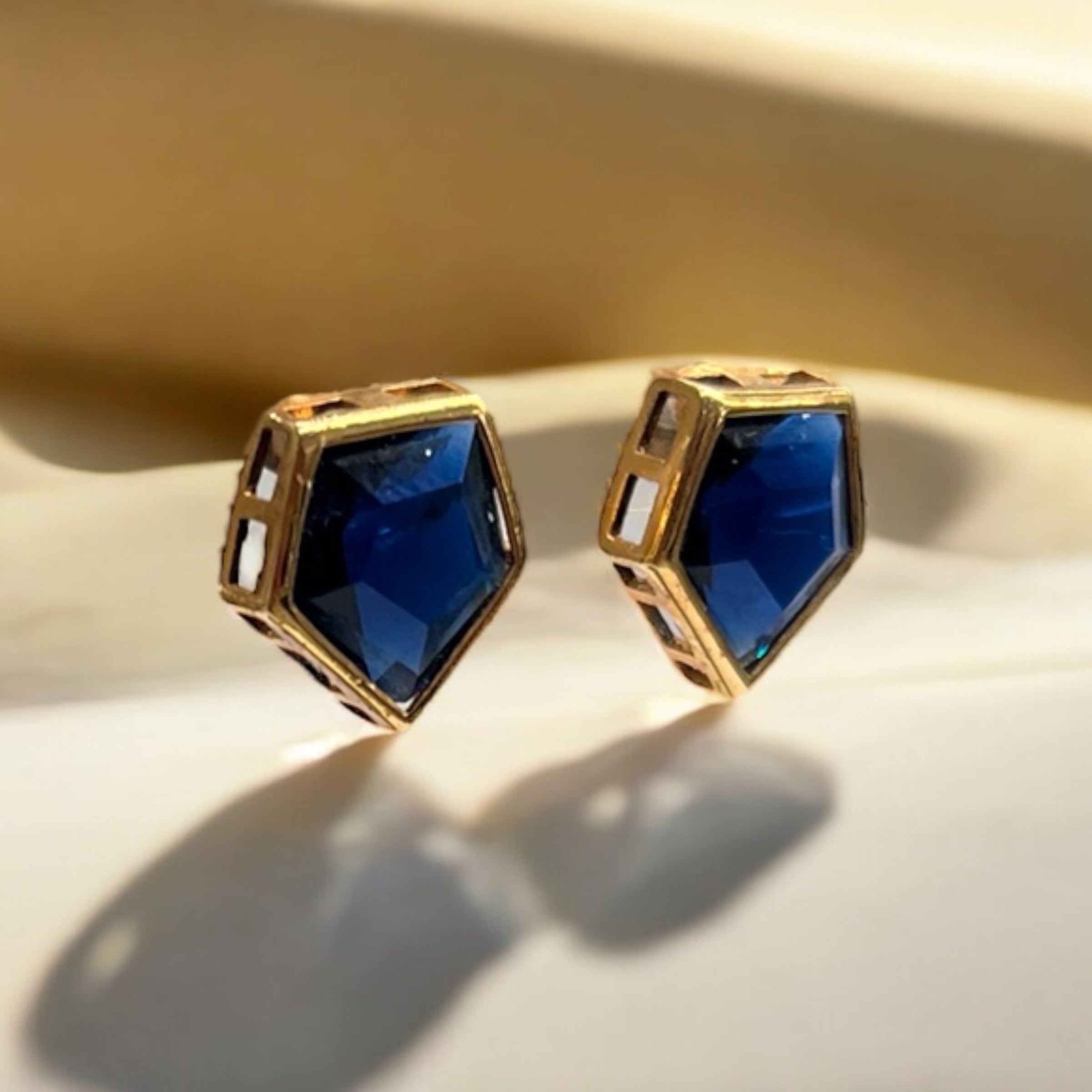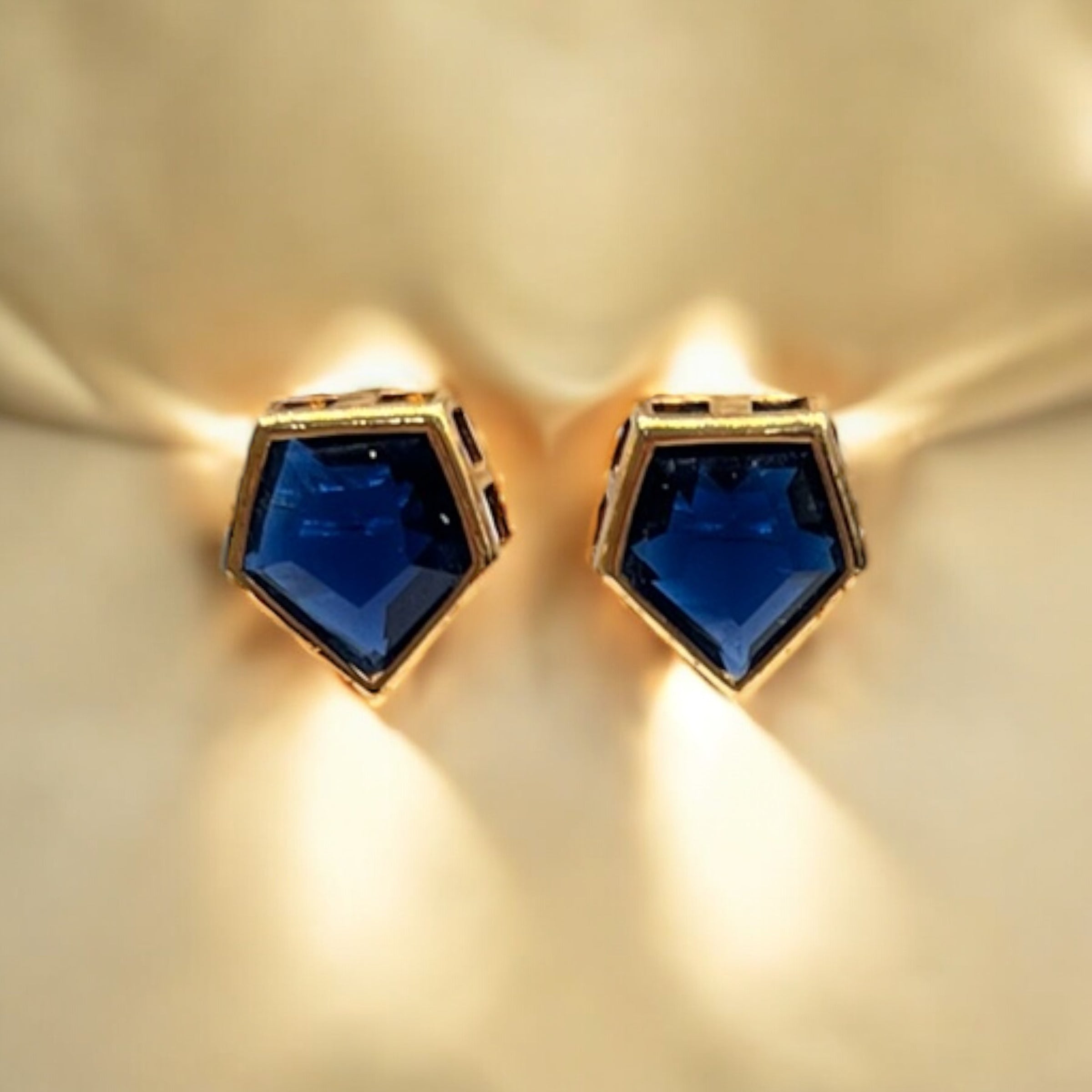 Brinco Pentágono com Cristal Azul Marinho