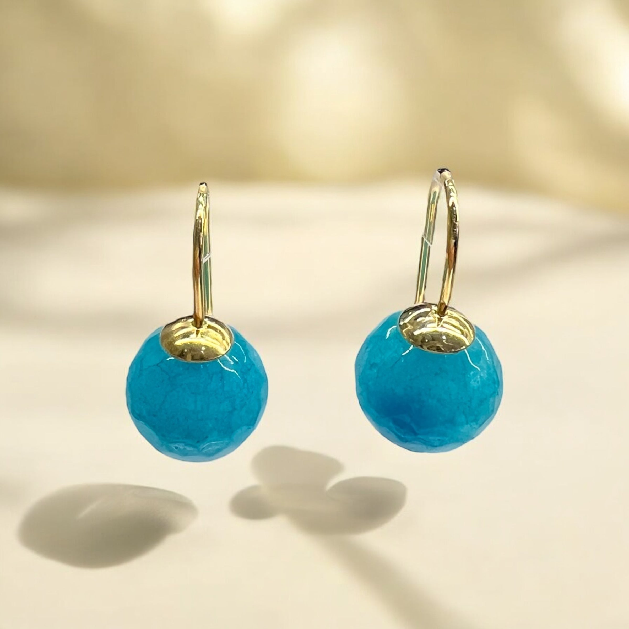 Brinco Anzol Bola Média Lapidada Quartzo Azul Piscina