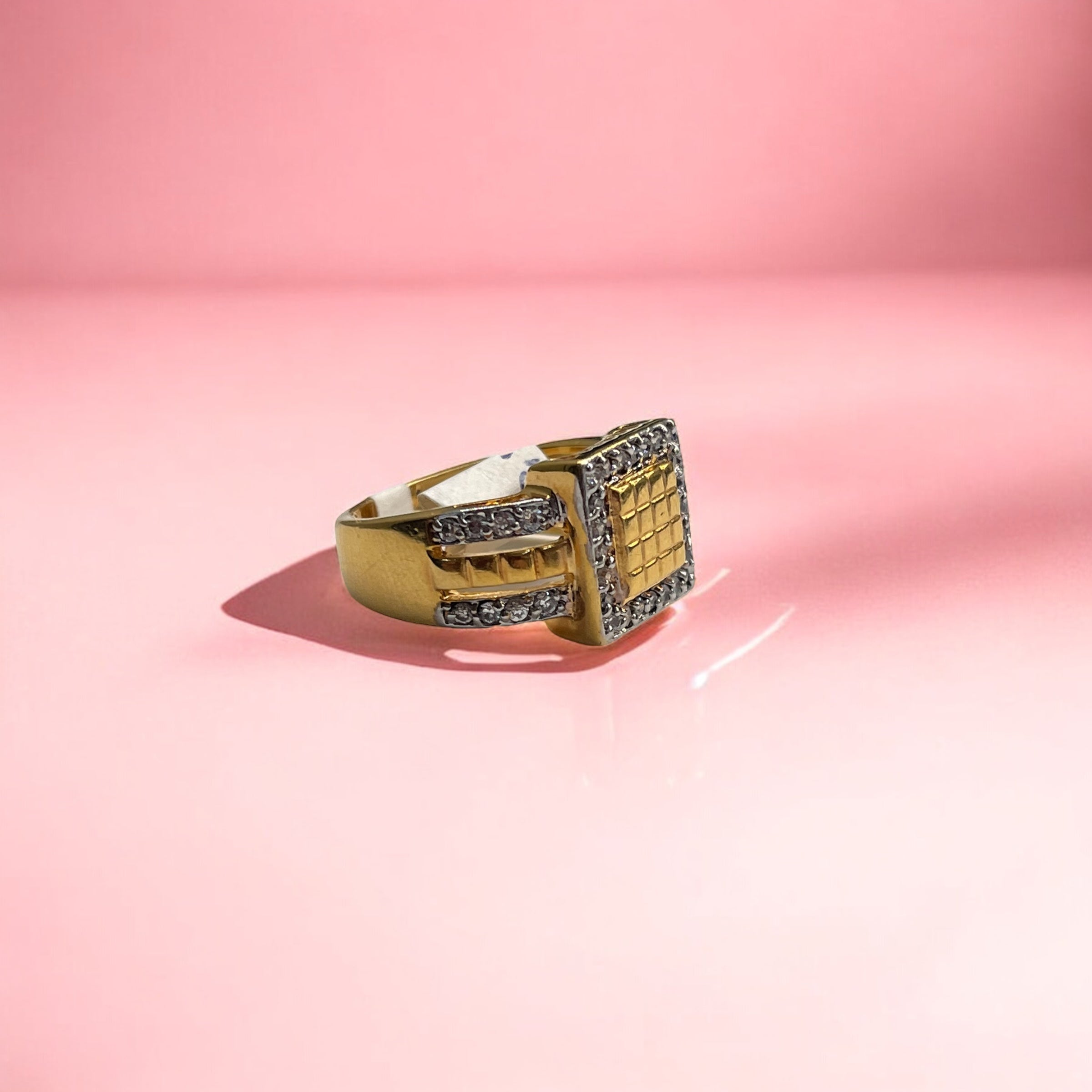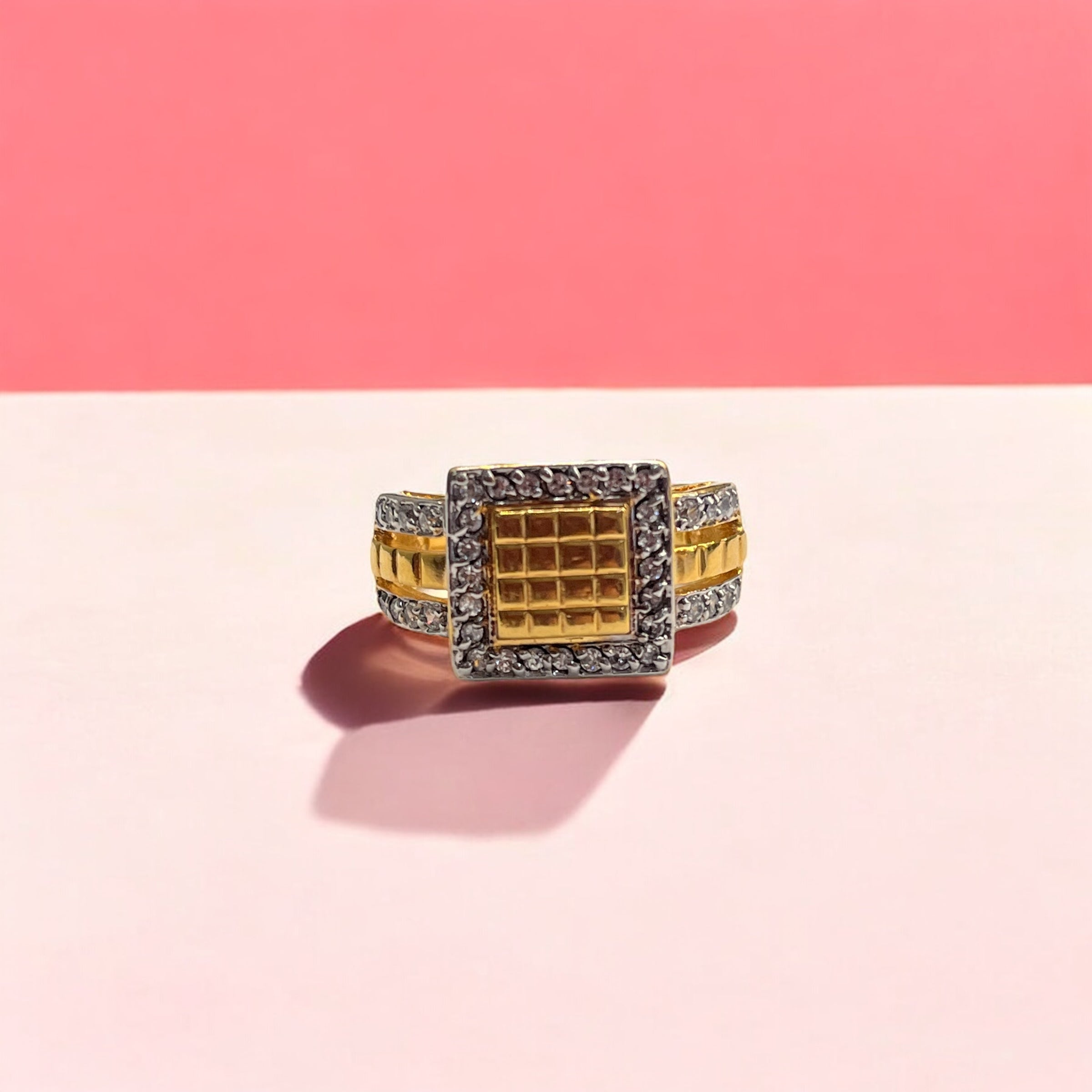 ANEL FOLHADO QUADRADO DOURADO COM OURO BRANCO