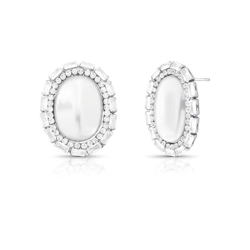 Brinco Pérola Shell Oval com Zirconias ao Redor