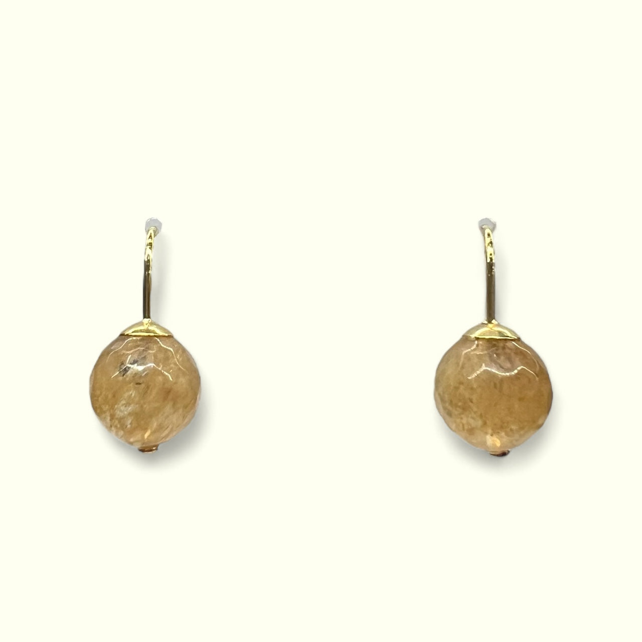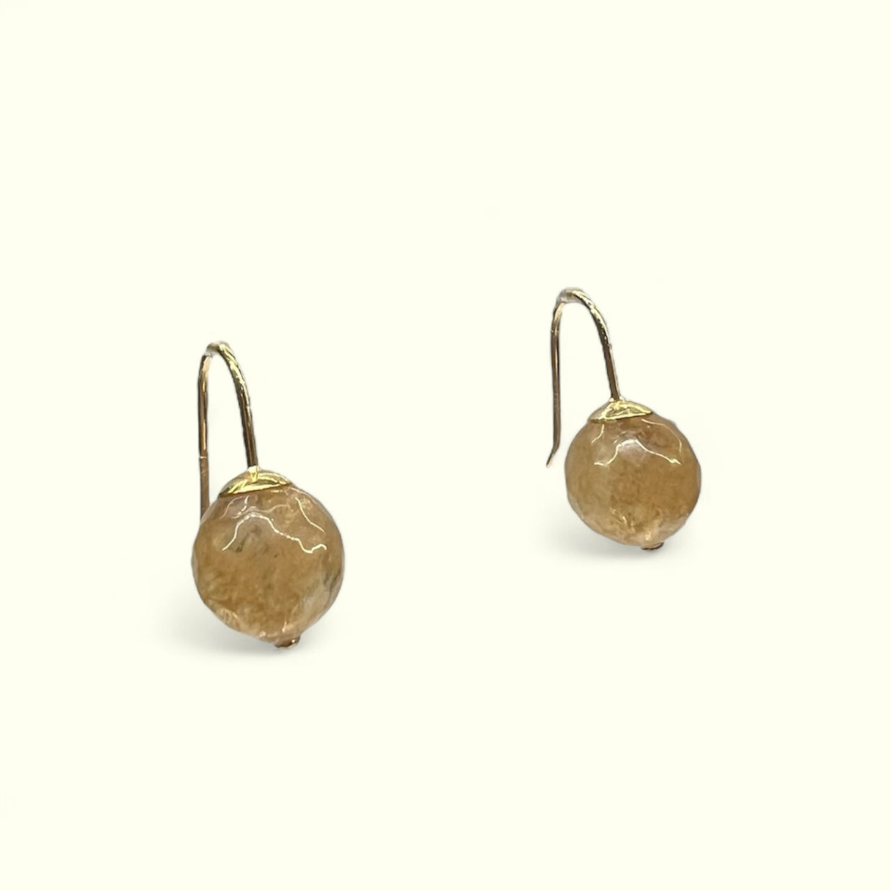 Brinco Anzol Com Bola Média Pedra Natural Citrino