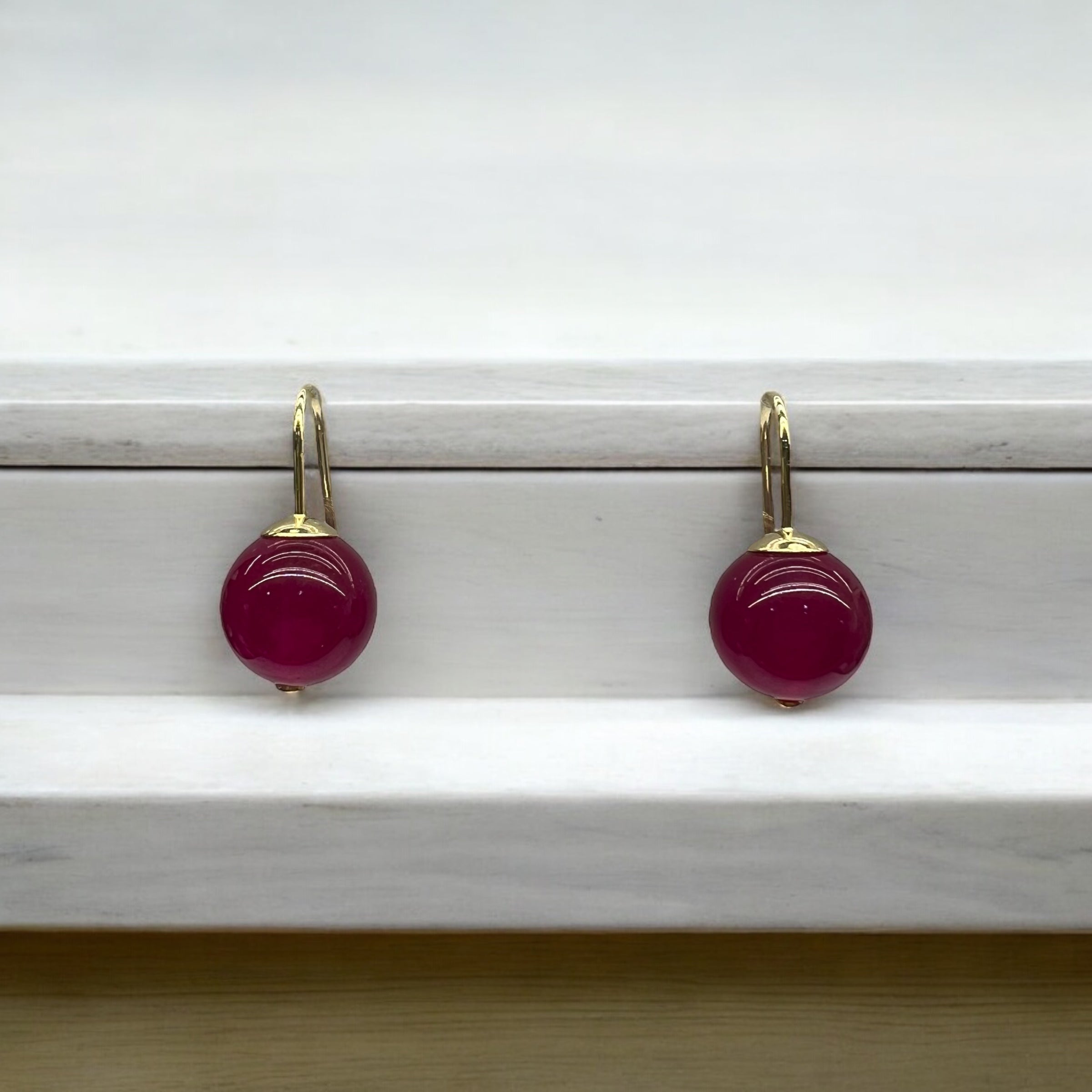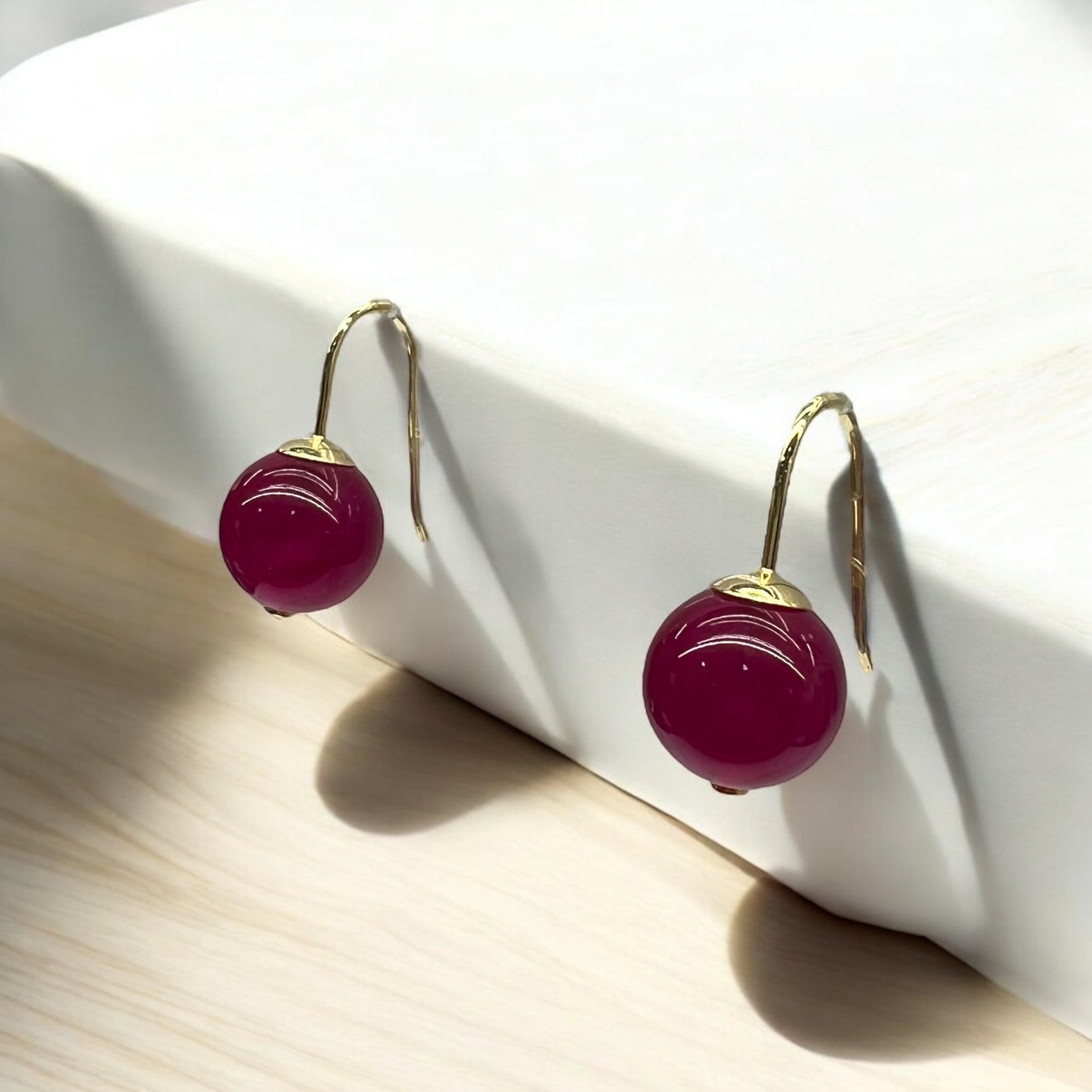 Brinco Anzol Com Quartzo Vermelho Bola Média
