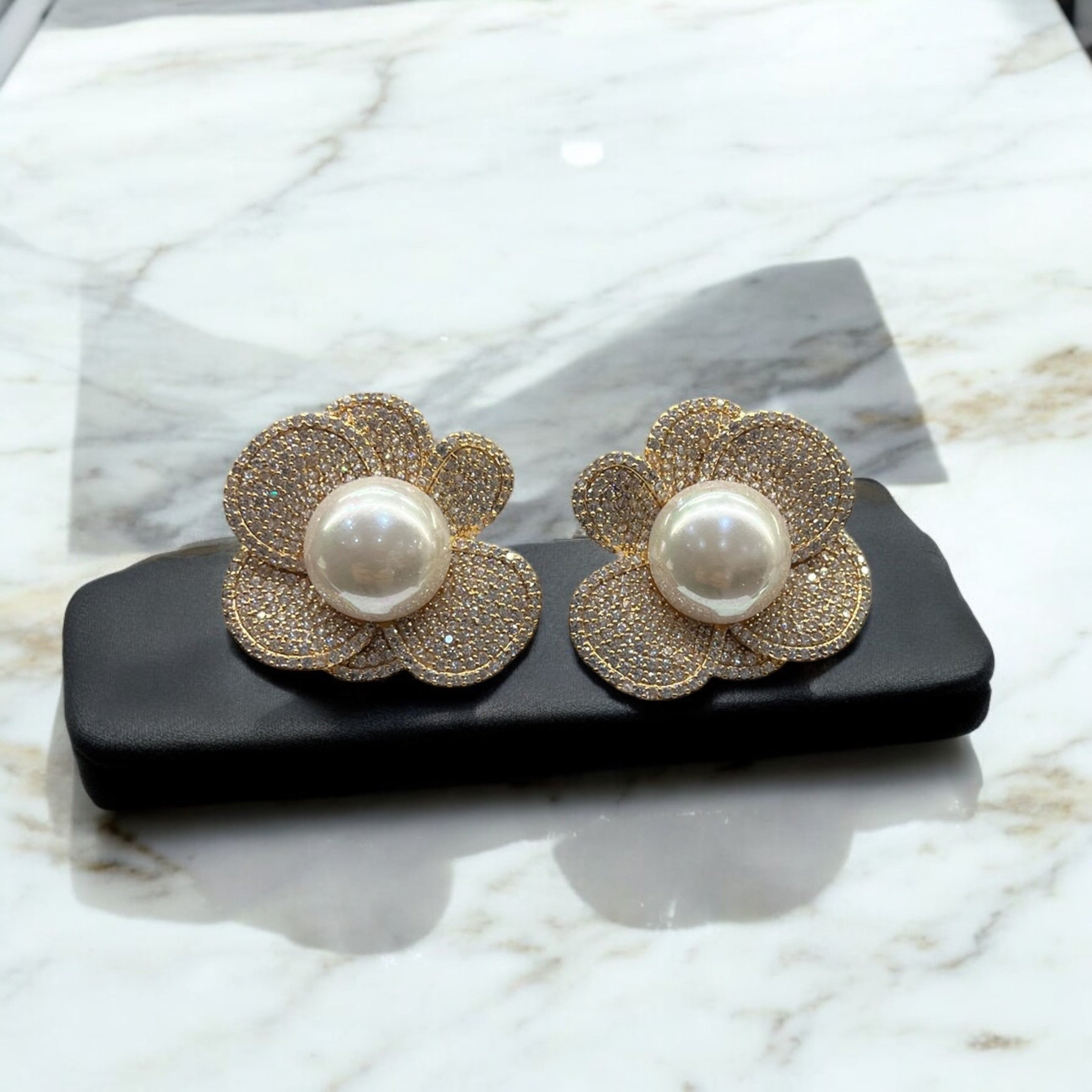 Brinco Flor Cravejado de Zircônia e Pérola Shell