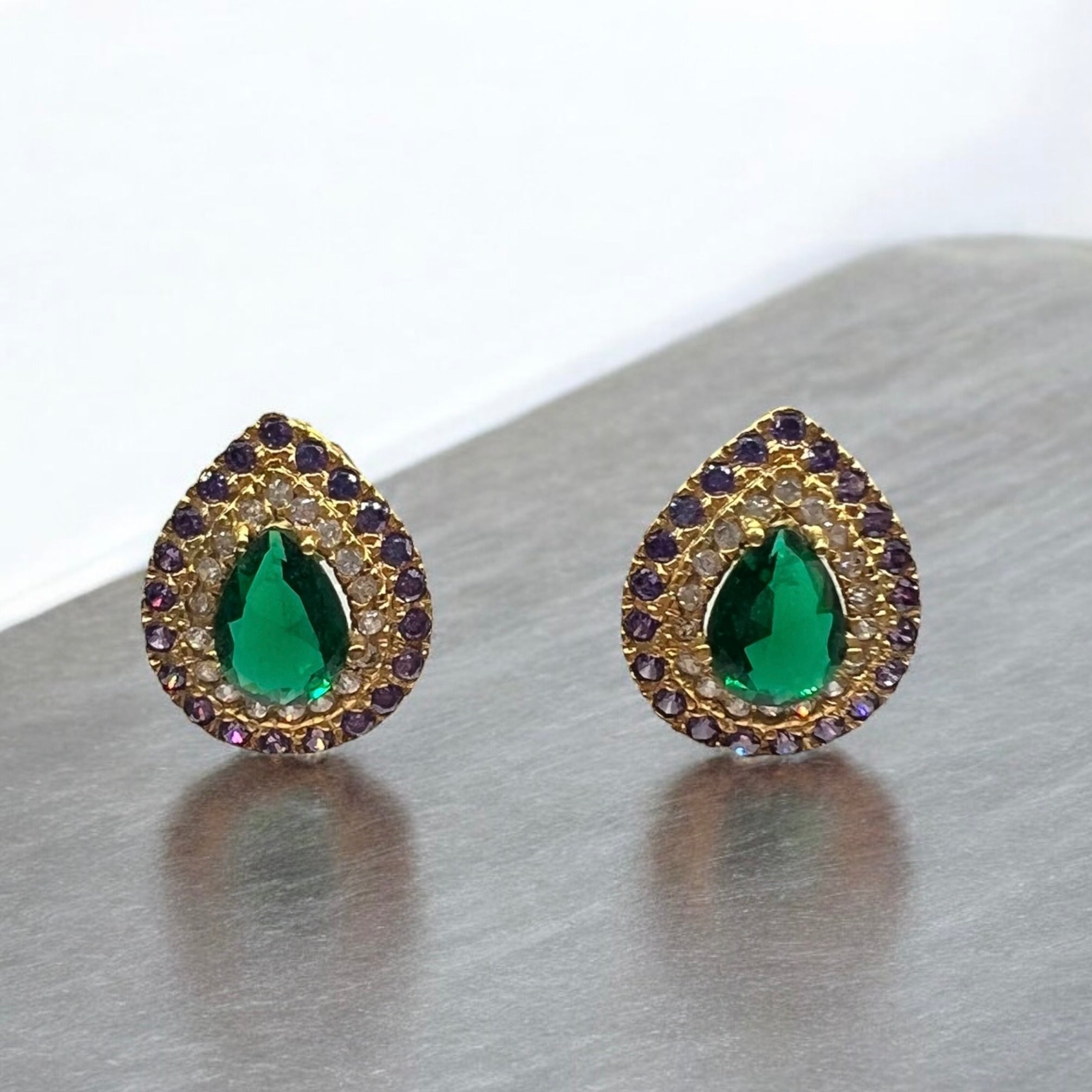Brinco Gota Com Zircônia Branca, Verde e Lilás