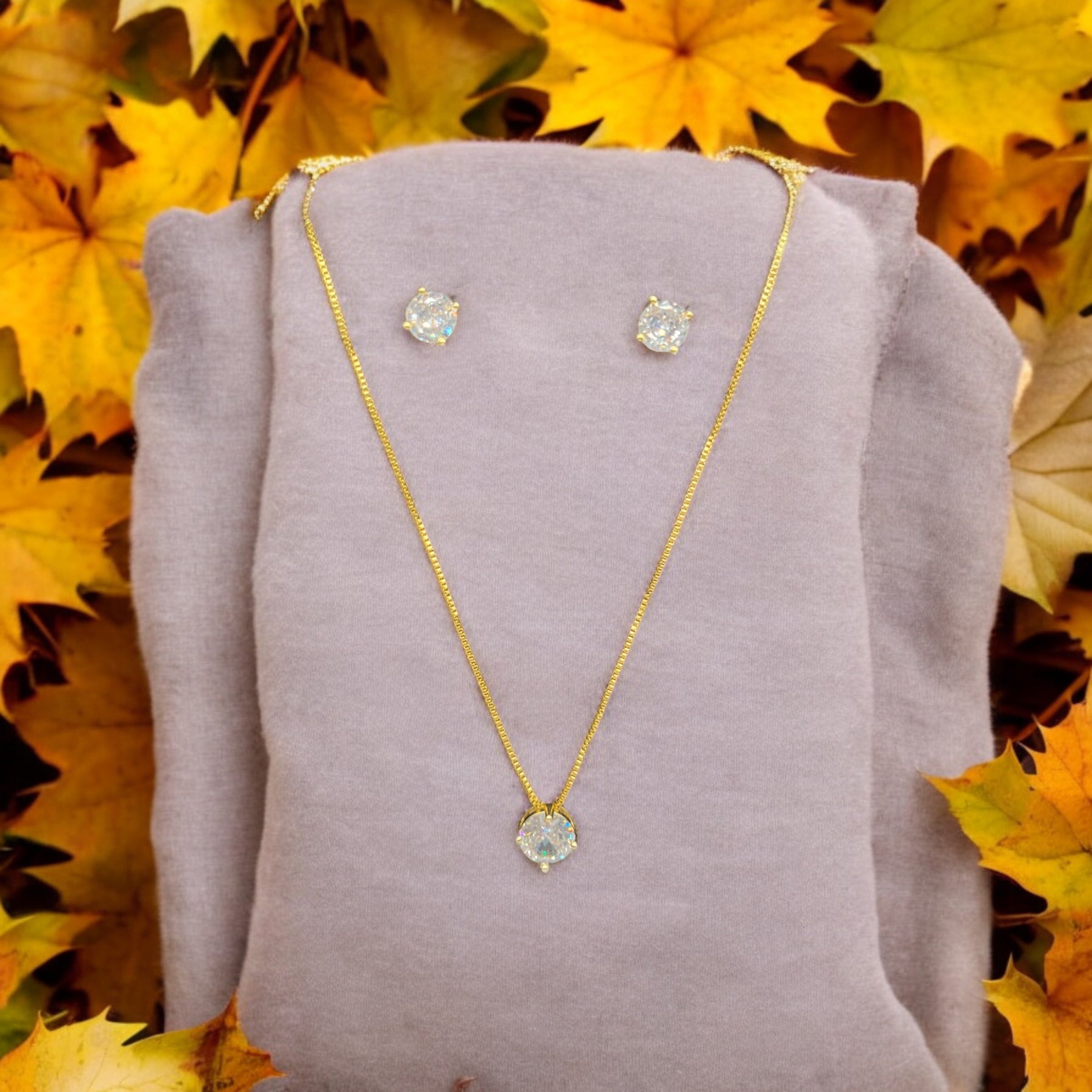 Conjunto Colar e Brinco Ponto de Luz Médio